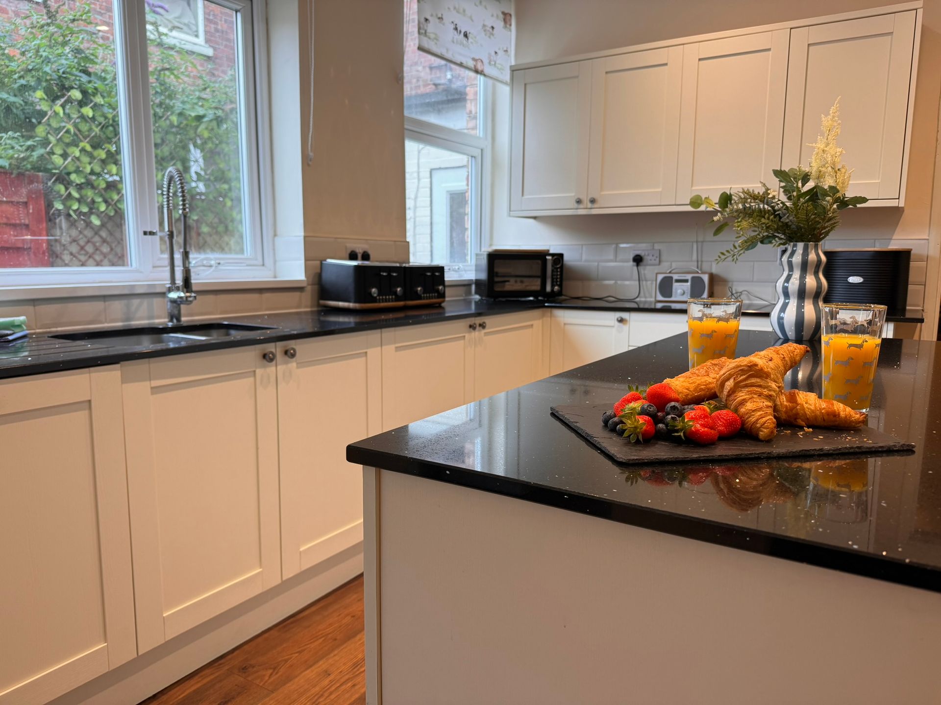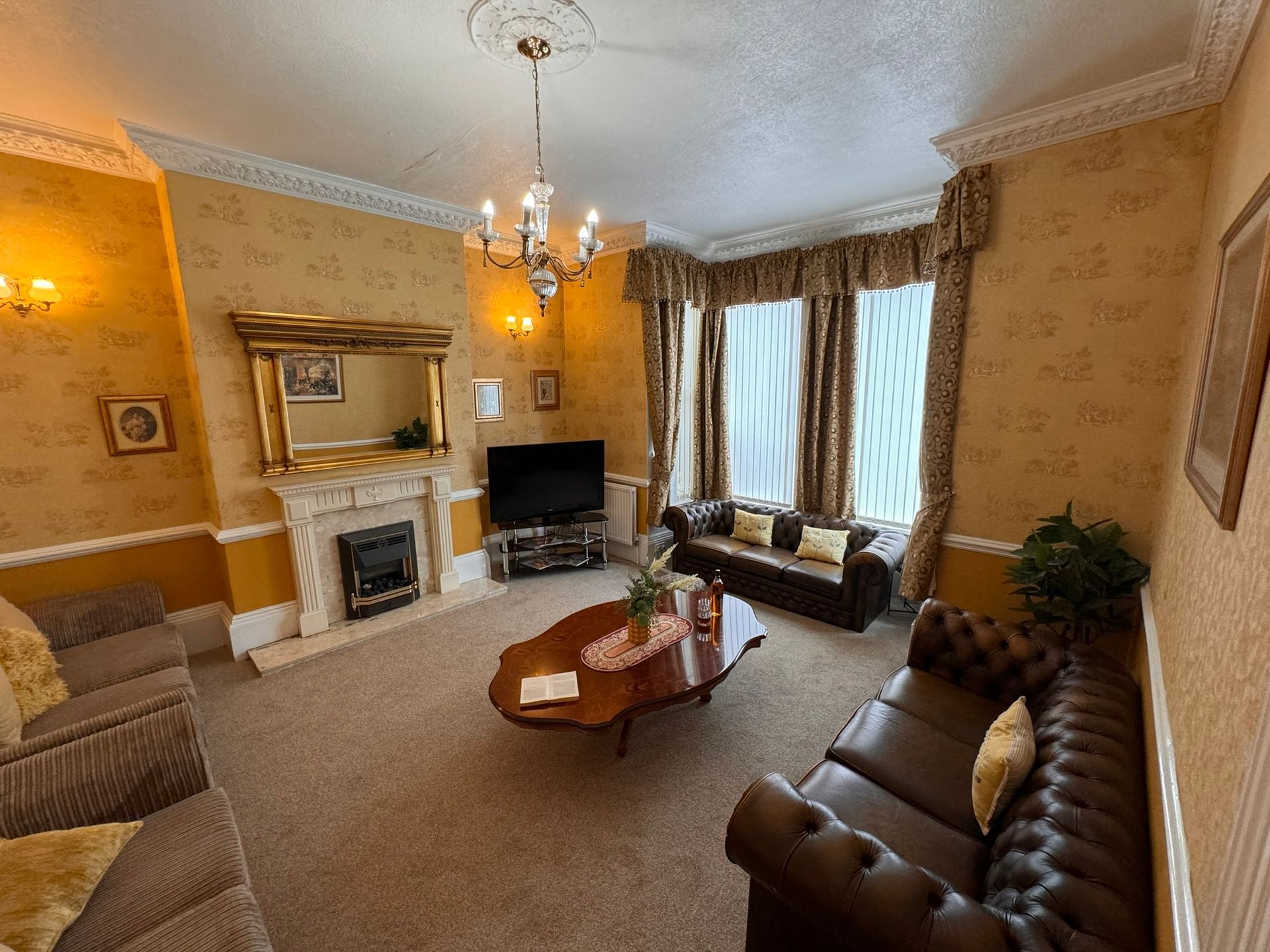 This fantastic 11-bedroomed holiday home is situated in the heart of Bridlington, a small coastal town within East Yorkshire. The property provides spacious living areas on the ground floor which consists of cosy seating areas, grand dining room and a modern fully equipped kitchen which includes a 5 burner hob, and an american style fridge-freezer.