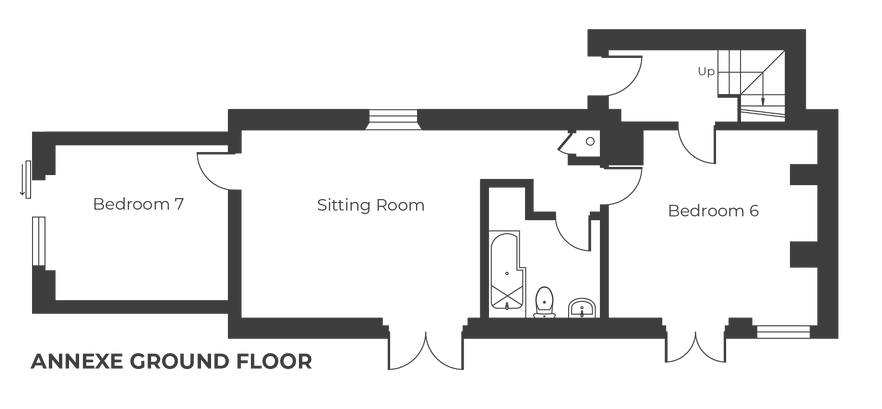 are both situated on the same grounds and each have their own private gardens. The properties can be booked together to provide accommodation for up to 42 guests over 19 bedrooms.