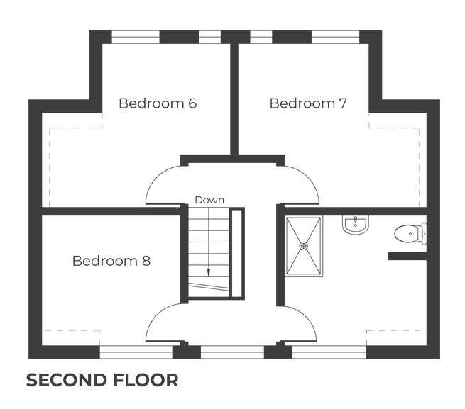 3 of the 8 bedrooms have ensuites. There is also a large family bathroom.